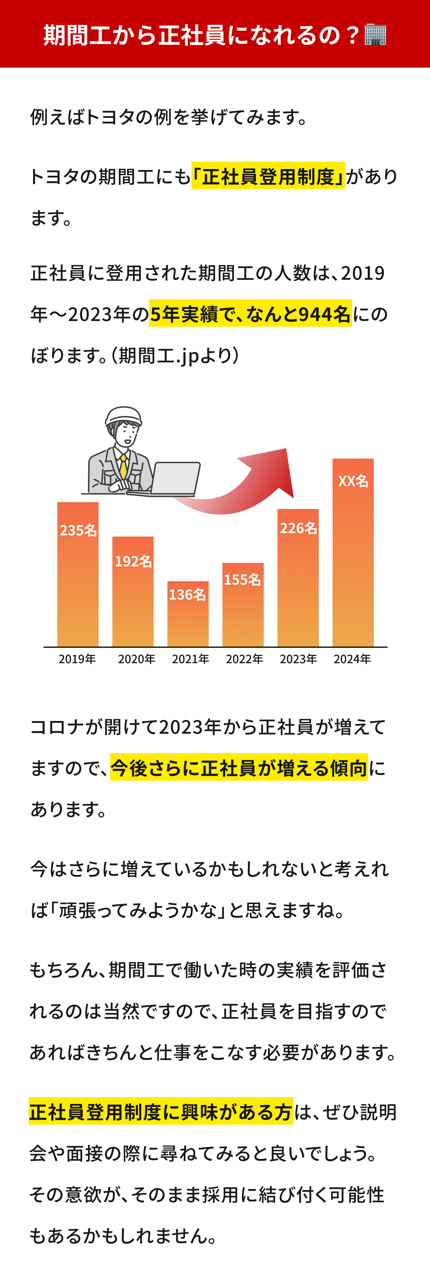 ▼あなたの地域の期間工求人をチェック▼ がっつりと稼ぎたい人にはチャンスですから、是非一度チャレンジしてみてくださいね。 期間工の公式サイトはこちら