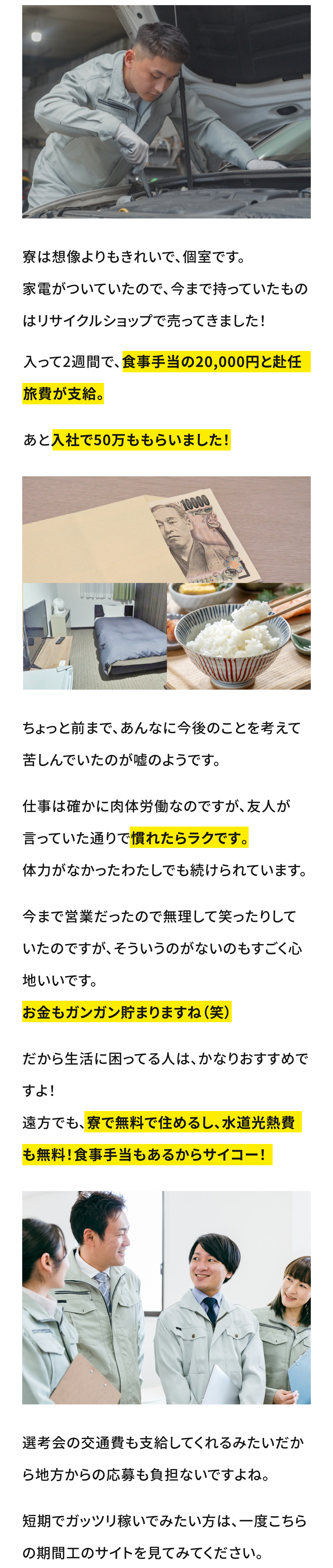 自動車工場で働く期間工なら、3カ月で100万円は稼げるんです!